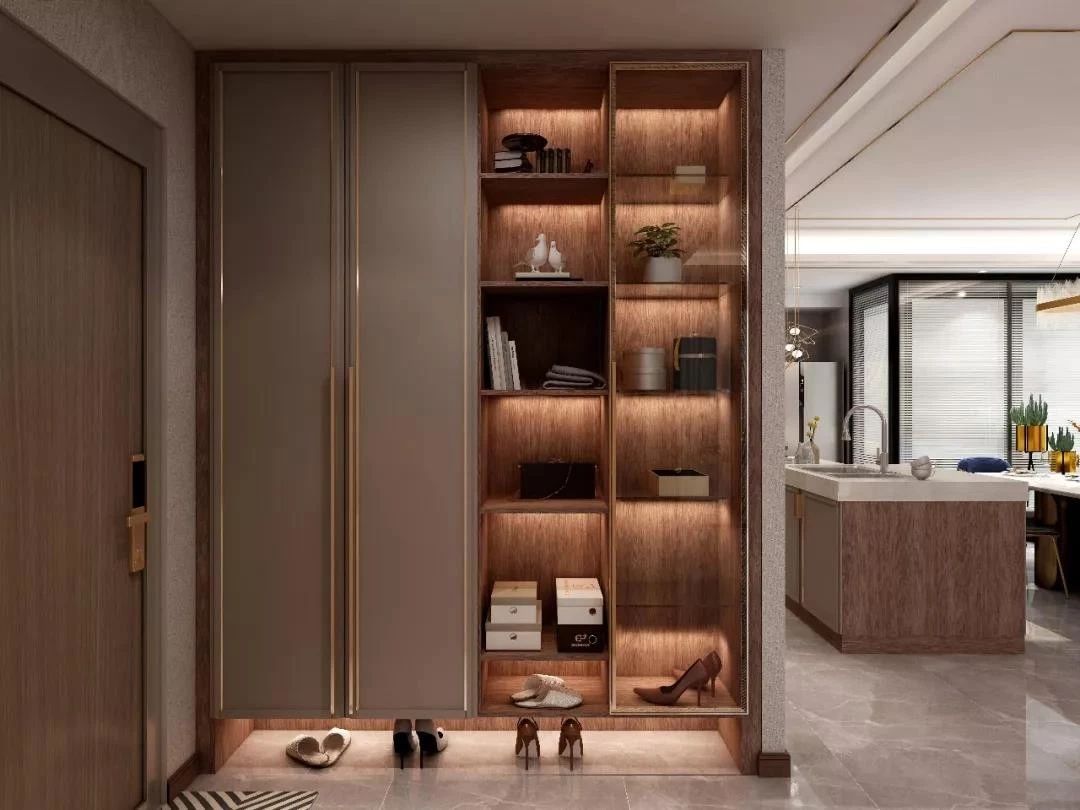 是這幾年比較流行的一種款式,可以根據客戶自身需求設計出一款鞋柜,按照客戶的習慣將鞋子和雜物收納起來。